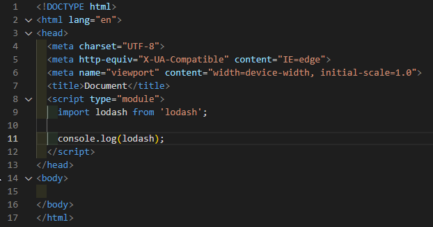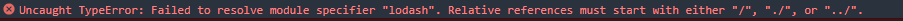 因为浏览器原生ESM功能有限,例如:只支持用完整的相对路径/绝对路径引入模块,不支持引入裸模块(以模块名的方式从node_modules下引入模块),会报错,举个例子引入lodash的报错: