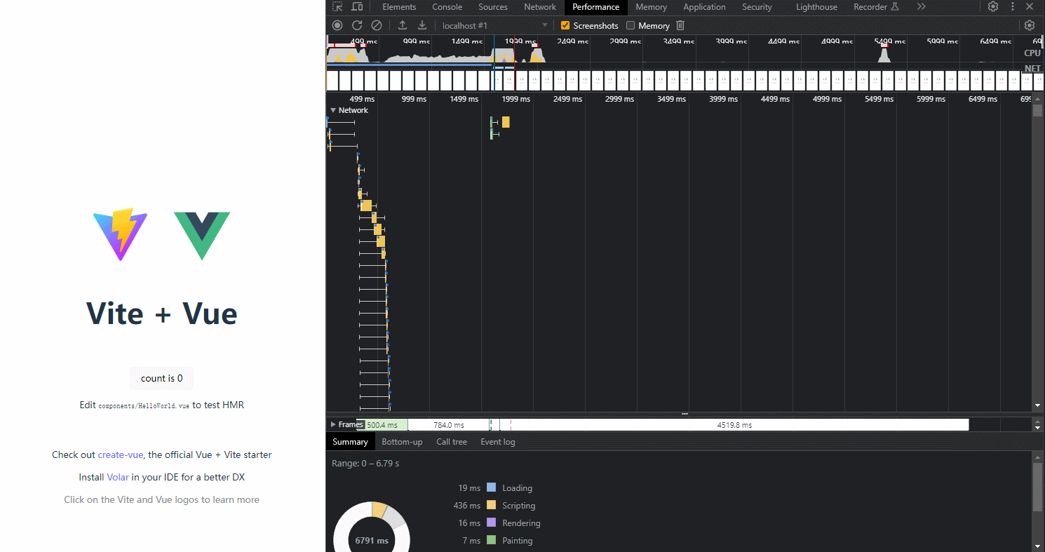 使用Vite创建一个Vite+vue的空项目,启动dev server的时间在1s-2s左右。